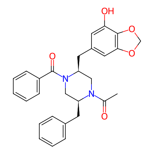 | SMILES | CC(=O)N1C[C@H](CC2=CC3=C(OCO3)C(O)=C2)N(C(=O)C2=CC=CC=C2)C[C@@H]1CC1=CC=CC=C1 |