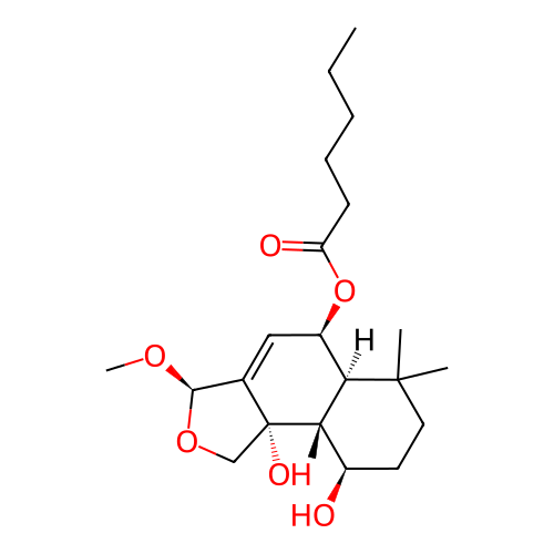 | InChI | InChI=1S/C22H36O6/c1-6-7-8-9-17(24)28-15-12-14-19(26-5)27-13-22(14,25)21(4)16(23)10-11-20(2,3)18(15)21/h12,15-16,18-19,23,25H,6-11,13H2,1-5H3/t15-,16-,18+,19-,21+,22-/m1/s1 |