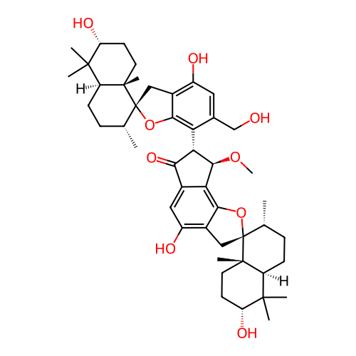 | SMILES | CO[C@H]1C2=C3O[C@]4(CC3=C(O)C=C2C(=O)[C@@H]1C1=C2O[C@]3(CC2=C(O)C=C1CO)[C@H](C)CC[C@H]1C(C)(C)[C@H](O)CC[C@@]13C)[C@H](C)CC[C@H]1C(C)(C)[C@H](O)CC[C@@]14C |
