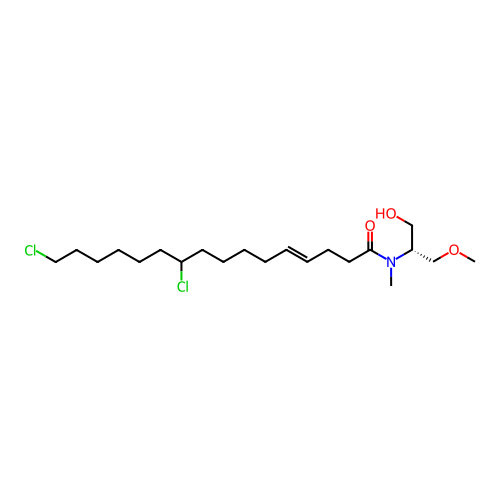 | SMILES | COC[C@@H](CO)N(C)C(=O)CC/C=C/CCCCC(Cl)CCCCCCCl |