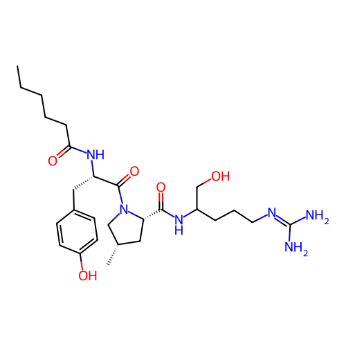 | SMILES | CCCCCC(=O)N[C@@H](CC1=CC=C(O)C=C1)C(=O)N1C[C@@H](C)C[C@H]1C(=O)NC(CO)CCCN=C(N)N |
