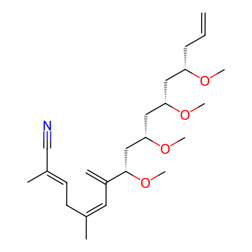 | SMILES | C=CC[C@@H](C[C@@H](C[C@@H](C[C@H](OC)C(=C)/C=C(/C)C/C=C(\C)C#N)OC)OC)OC |