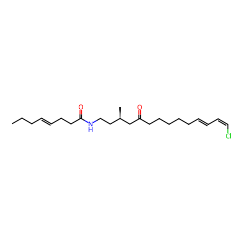 | SMILES | CCC/C=C/CCC(=O)NCC[C@@H](C)CC(=O)CCCCC/C=C/C=C\Cl |