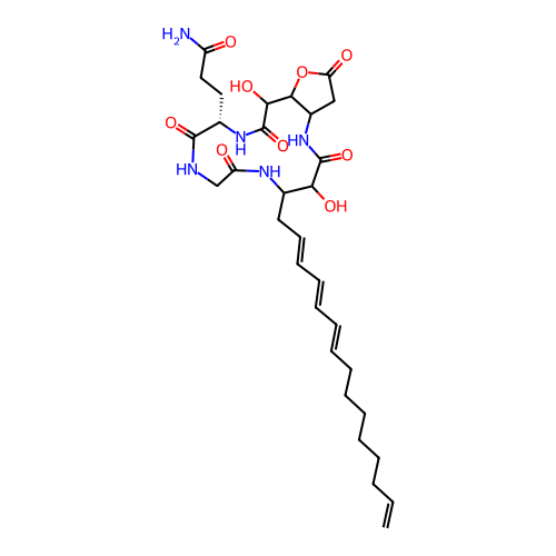 | SMILES | C=CCCCCCC/C=C/C=C/C=C/CC1NC(=O)CNC(=O)[C@H](CCC(N)=O)NC(=O)C(O)C2OC(=O)CC2NC(=O)C1O |