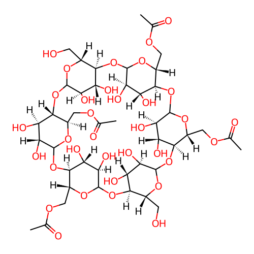 | SMILES | CC(=O)OC[C@H]1OC2O[C@@H]3[C@@H](COC(C)=O)OC(O[C@@H]4[C@@H](CO)OC(O[C@@H]5[C@@H](COC(C)=O)OC(O[C@@H]6[C@@H](COC(C)=O)OC(O[C@@H]7[C@@H](CO)OC(O[C@H]1[C@H](O)[C@H]2O)[C@H](O)[C@H]7O)[C@H](O)[C@H]6O)[C@H](O)[C@H]5O)[C@H](O)[C@H]4O)[C@H](O)[C@H]3O |