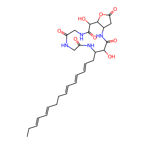 | SMILES | CC/C=C/C=C/CC/C=C/C=C/C=C/CC1NC(=O)CNC(=O)CNC(=O)C(O)C2OC(=O)CC2NC(=O)C1O |