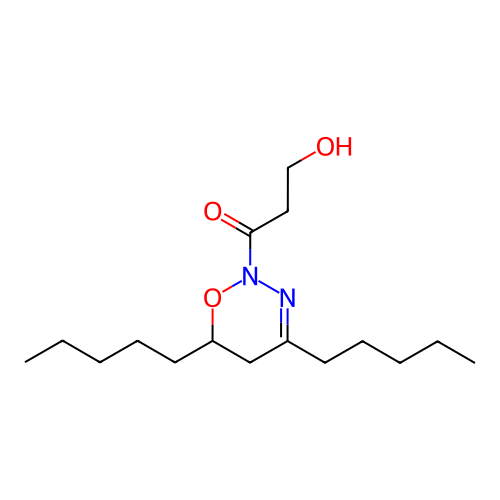 | SMILES | CCCCCC1=NN(C(=O)CCO)OC(CCCCC)C1 |