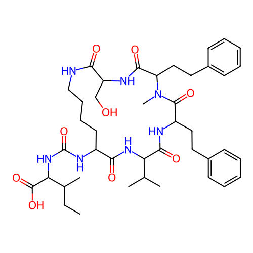 | SMILES | CCC(C)C(NC(=O)NC1CCCCNC(=O)C(CO)NC(=O)C(CCC2=CC=CC=C2)N(C)C(=O)C(CCC2=CC=CC=C2)NC(=O)C(C(C)C)NC1=O)C(=O)O |