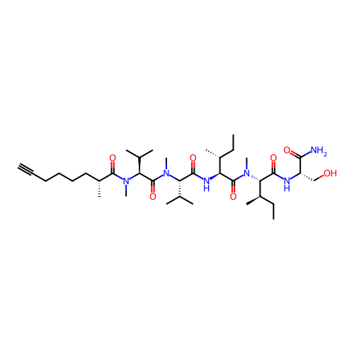 | SMILES | C#CCCCC[C@@H](C)C(=O)N(C)[C@H](C(=O)N(C)[C@H](C(=O)N[C@H](C(=O)N(C)[C@H](C(=O)N[C@@H](CO)C(N)=O)[C@H](C)CC)[C@H](C)CC)C(C)C)C(C)C |