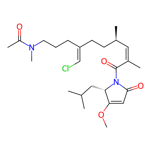 | SMILES | COC1=CC(=O)N(C(=O)/C(C)=C\[C@H](C)CC/C(=C/Cl)CCCN(C)C(C)=O)[C@H]1CC(C)C |