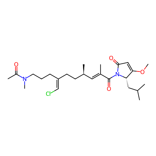 | SMILES | COC1=CC(=O)N(C(=O)/C(C)=C/[C@H](C)CC/C(=C/Cl)CCCN(C)C(C)=O)[C@H]1CC(C)C |