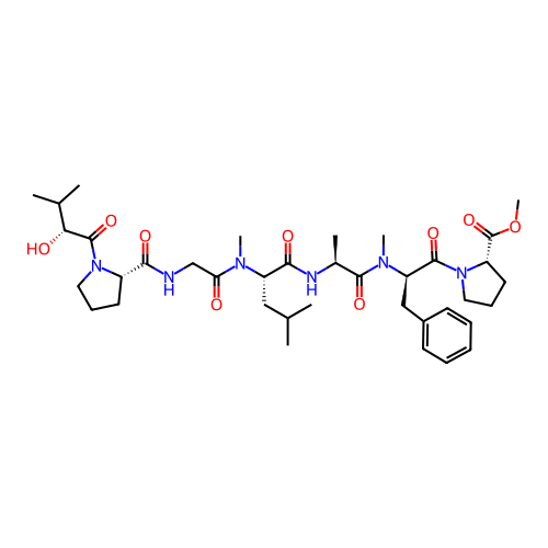 | SMILES | COC(=O)[C@@H]1CCCN1C(=O)[C@@H](CC1=CC=CC=C1)N(C)C(=O)[C@H](C)NC(=O)[C@H](CC(C)C)N(C)C(=O)CNC(=O)[C@@H]1CCCN1C(=O)[C@H](O)C(C)C |