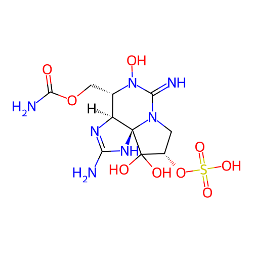 | SMILES | N=C1N(O)[C@@H](COC(N)=O)[C@@H]2N=C(N)N[C@]23N1C[C@H](OS(=O)(=O)O)C3(O)O |