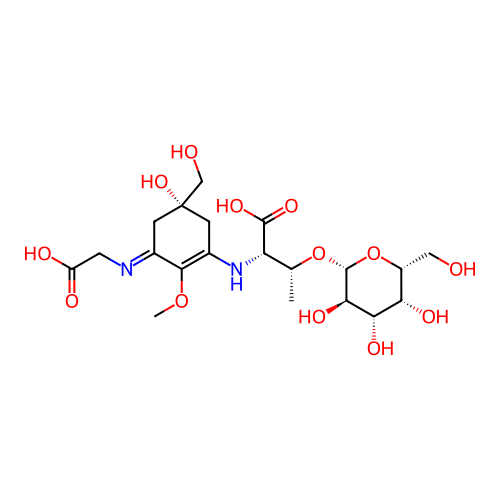 | SMILES | COC1=C(N[C@H](C(=O)O)[C@@H](C)O[C@@H]2O[C@H](CO)[C@H](O)[C@H](O)[C@H]2O)C[C@](O)(CO)CC1=NCC(=O)O |