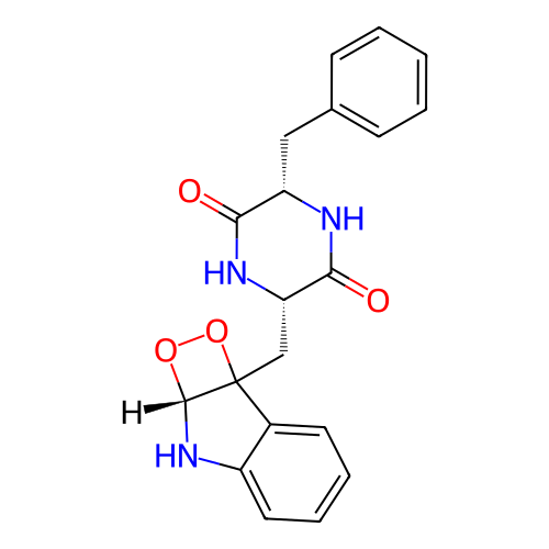 | SMILES | O=C1N[C@@H](CC23OO[C@H]2NC2=CC=CC=C23)C(=O)N[C@H]1CC1=CC=CC=C1 |