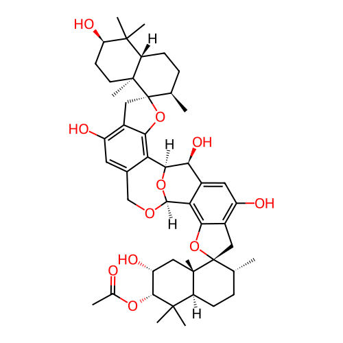 | SMILES | CC(=O)O[C@@H]1[C@H](O)C[C@@]2(C)[C@@H](CC[C@@H](C)[C@]23CC2=C(O)C=C4C(=C2O3)[C@H]2OCC3=CC(O)=C5C[C@@]6(OC5=C3[C@H](O2)[C@H]4O)[C@H](C)CC[C@H]2C(C)(C)[C@H](O)CC[C@@]26C)C1(C)C |