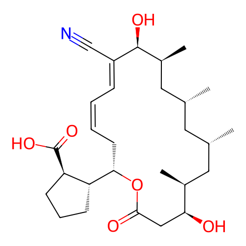 | SMILES | C[C@@H]1C[C@H](C)[C@@H](O)CC(=O)O[C@H]([C@@H]2CCC[C@H]2C(=O)O)C/C=C\C=C(/C#N)[C@@H](O)[C@@H](C)C[C@H](C)C1 |