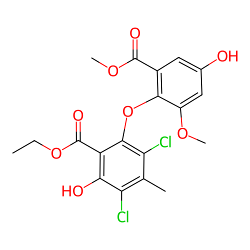| SMILES | CCOC(=O)C1=C(O)C(Cl)=C(C)C(Cl)=C1OC1=C(C(=O)OC)C=C(O)C=C1OC |
