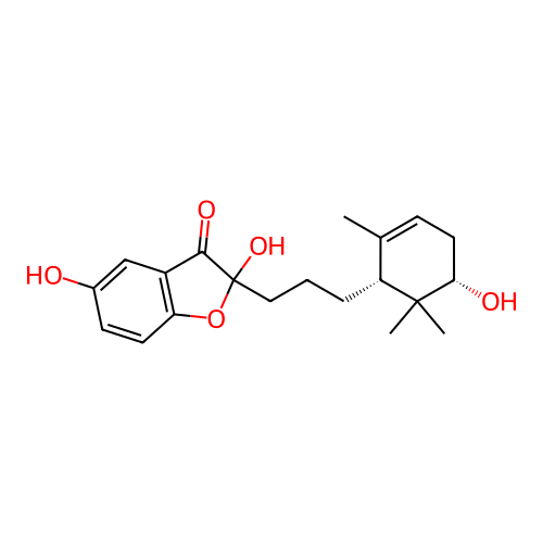 | InChI | InChI=1S/C20H26O5/c1-12-6-9-17(22)19(2,3)15(12)5-4-10-20(24)18(23)14-11-13(21)7-8-16(14)25-20/h6-8,11,15,17,21-22,24H,4-5,9-10H2,1-3H3/t15-,17+,20?/m1/s1 |