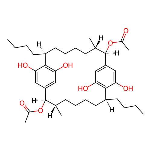 | SMILES | CCCC[C@H]1CCCC[C@H](C)[C@@H](OC(C)=O)C2=CC(O)=C(C(O)=C2)[C@@H](CCCC)CCCC[C@H](C)[C@@H](OC(C)=O)C2=CC(O)=C1C(O)=C2 |