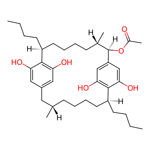 | SMILES | CCCC[C@H]1CCCC[C@H](C)CC2=CC(O)=C(C(O)=C2)[C@@H](CCCC)CCCC[C@H](C)[C@@H](OC(C)=O)C2=CC(O)=C1C(O)=C2 |