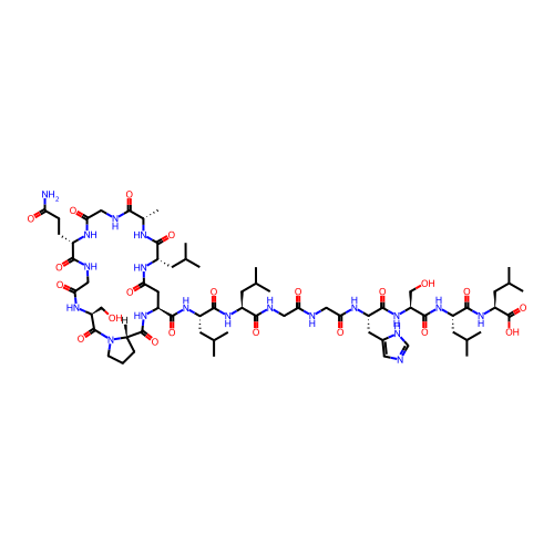 | SMILES | CC(C)C[C@H](NC(=O)[C@H](CC(C)C)NC(=O)[C@H](CO)NC(=O)[C@H](CC1=CN=C[NH]1)NC(=O)CNC(=O)CNC(=O)[C@H](CC(C)C)NC(=O)[C@H](CC(C)C)NC(=O)[C@@H]1CC(=O)N[C@@H](CC(C)C)C(=O)N[C@@H](C)C(=O)NCC(=O)N[C@@H](CCC(N)=O)C(=O)NCC(=O)N[C@@H](CO)C(=O)N2CCC[C@H]2C(=O)N1)C(=O)O |