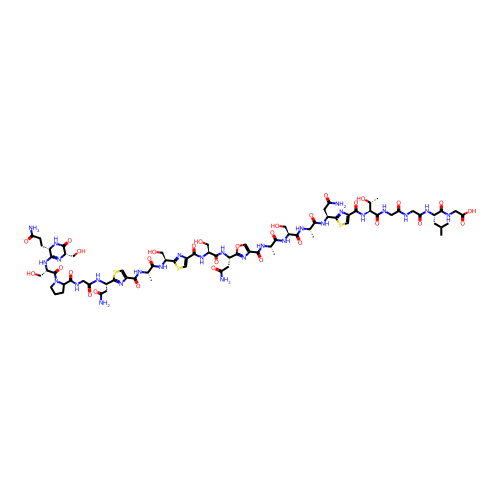 | SMILES | CC(C)C[C@H](NC(=O)CNC(=O)CNC(=O)[C@@H](NC(=O)C1=CSC([C@H](CC(N)=O)NC(=O)[C@H](C)NC(=O)[C@H](CO)NC(=O)[C@H](C)NC(=O)C2=COC([C@H](CC(N)=O)NC(=O)[C@H](CO)NC(=O)C3=CSC([C@H](CO)NC(=O)[C@H](C)NC(=O)C4=CSC([C@H](CC(N)=O)NC(=O)CNC(=O)C5CCCN5C(=O)[C@H](CO)NC5=N[C@@H](CO)C(=O)N[C@H]5CCC(N)=O)=N4)=N3)=N2)=N1)[C@@H](C)O)C(=O)NCC(=O)O |