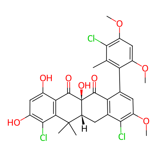 | SMILES | COC1=C(Cl)C(C)=C(C2=CC(OC)=C(Cl)C3=C2C(=O)[C@@]2(O)C(=O)C4=C(C(Cl)=C(O)C=C4O)C(C)(C)[C@H]2C3)C(OC)=C1 |