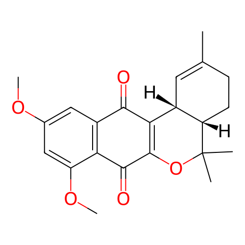 | SMILES | COC1=CC2=C(C(=O)C3=C(C2=O)[C@@H]2C=C(C)CC[C@@H]2C(C)(C)O3)C(OC)=C1 |