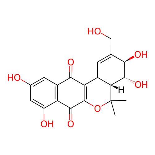 | SMILES | CC1(C)OC2=C(C(=O)C3=C(C2=O)C(O)=CC(O)=C3)C2C=C(CO)[C@@H](O)[C@H](O)[C@@H]21 |