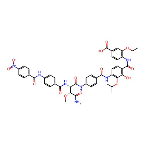 | SMILES | CCOC1=C(NC(=O)C2=C(O)C(OC(C)C)=C(NC(=O)C3=CC=C(NC(=O)[C@@H](NC(=O)C4=CC=C(NC(=O)C5=CC=C([N+](=O)[O-])C=C5)C=C4)[C@@H](OC)C(N)=O)C=C3)C=C2)C=CC(C(=O)O)=C1 |