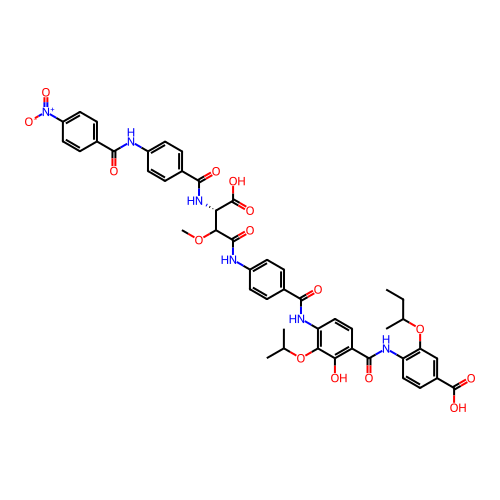 | SMILES | CCC(C)OC1=C(NC(=O)C2=C(O)C(OC(C)C)=C(NC(=O)C3=CC=C(NC(=O)C(OC)[C@H](NC(=O)C4=CC=C(NC(=O)C5=CC=C([N+](=O)[O-])C=C5)C=C4)C(=O)O)C=C3)C=C2)C=CC(C(=O)O)=C1 |