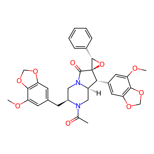 | SMILES | COC1=CC(C[C@H]2CN3C(=O)[C@@]4(O[C@H]4C4=CC=CC=C4)[C@H](C4=CC5=C(OCO5)C(OC)=C4)[C@H]3CN2C(C)=O)=CC2=C1OCO2 |