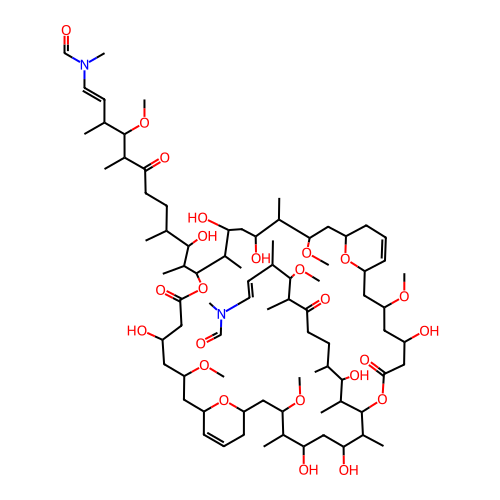 | SMILES | COC1CC(O)CC(=O)OC(C(C)C(O)C(C)CCC(=O)C(C)C(OC)C(C)/C=C/N(C)C=O)C(C)C(O)CC(O)C(C)C(OC)CC2CC=CC(CC(OC)CC(O)CC(=O)OC(C(C)C(O)C(C)CCC(=O)C(C)C(OC)C(C)/C=C/N(C)C=O)C(C)C(O)CC(O)C(C)C(OC)CC3CC=CC(C1)O3)O2 |