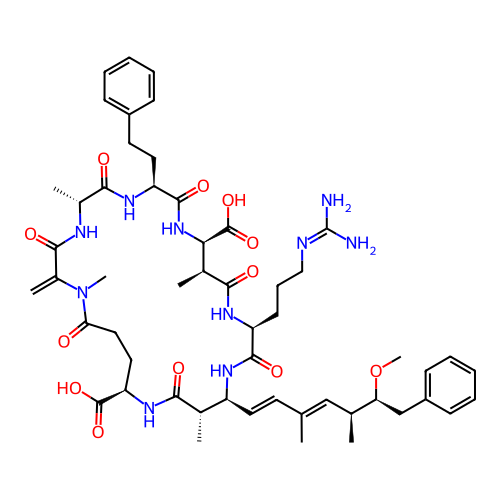 | SMILES | C=C1C(=O)N[C@H](C)C(=O)N[C@@H](CCC2=CC=CC=C2)C(=O)N[C@@H](C(=O)O)[C@H](C)C(=O)N[C@@H](CCCN=C(N)N)C(=O)N[C@@H](/C=C/C(C)=C/[C@H](C)[C@H](CC2=CC=CC=C2)OC)[C@H](C)C(=O)N[C@@H](C(=O)O)CCC(=O)N1C |