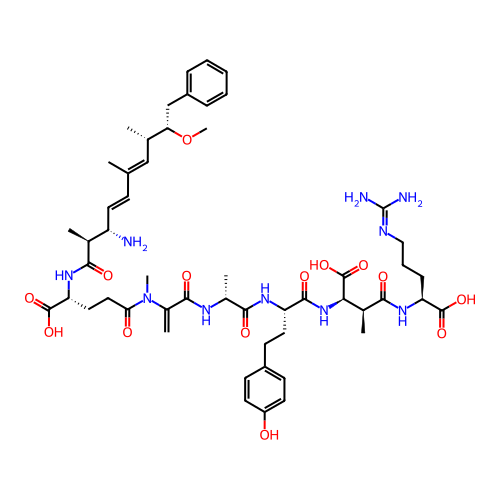 | SMILES | C=C(C(=O)N[C@H](C)C(=O)N[C@@H](CCC1=CC=C(O)C=C1)C(=O)N[C@@H](C(=O)O)[C@H](C)C(=O)N[C@@H](CCCN=C(N)N)C(=O)O)N(C)C(=O)CC[C@@H](NC(=O)[C@@H](C)[C@@H](N)/C=C/C(C)=C/[C@H](C)[C@H](CC1=CC=CC=C1)OC)C(=O)O |