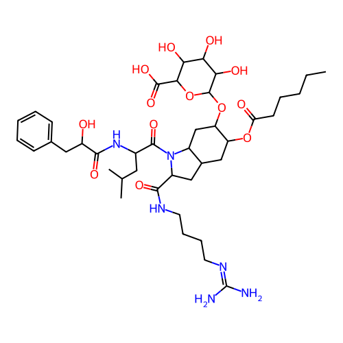| SMILES | CCCCCC(=O)OC1CC2CC(C(=O)NCCCCN=C(N)N)N(C(=O)C(CC(C)C)NC(=O)C(O)CC3=CC=CC=C3)C2CC1OC1OC(C(=O)O)C(O)C(O)C1O |