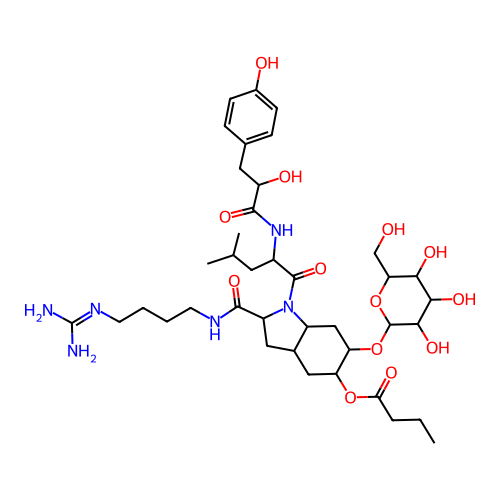 | SMILES | CCCC(=O)OC1CC2CC(C(=O)NCCCCN=C(N)N)N(C(=O)C(CC(C)C)NC(=O)C(O)CC3=CC=C(O)C=C3)C2CC1OC1OC(CO)C(O)C(O)C1O |
