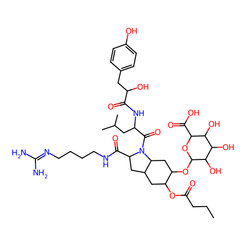 | SMILES | CCCC(=O)OC1CC2CC(C(=O)NCCCCN=C(N)N)N(C(=O)C(CC(C)C)NC(=O)C(O)CC3=CC=C(O)C=C3)C2CC1OC1OC(C(=O)O)C(O)C(O)C1O |