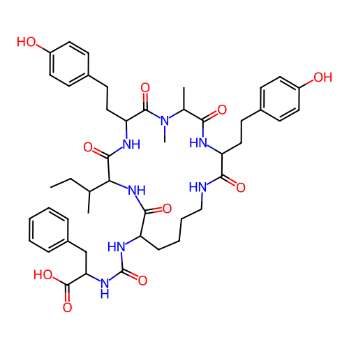 | SMILES | CCC(C)C1NC(=O)C(NC(=O)NC(CC2=CC=CC=C2)C(=O)O)CCCCNC(=O)C(CCC2=CC=C(O)C=C2)NC(=O)C(C)N(C)C(=O)C(CCC2=CC=C(O)C=C2)NC1=O |