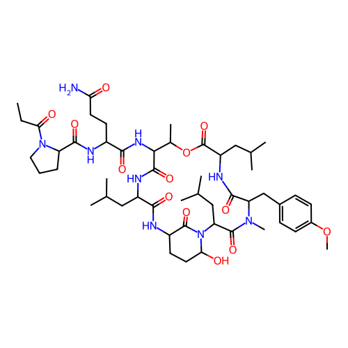 | SMILES | CCC(=O)N1CCCC1C(=O)NC(CCC(N)=O)C(=O)NC1C(=O)NC(CC(C)C)C(=O)NC2CCC(O)N(C2=O)C(CC(C)C)C(=O)N(C)C(CC2=CC=C(OC)C=C2)C(=O)NC(CC(C)C)C(=O)OC1C |