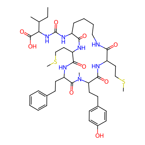 | SMILES | CCC(C)C(NC(=O)NC1CCCCNC(=O)C(CCSC)NC(=O)C(CCC2=CC=C(O)C=C2)N(C)C(=O)C(CCC2=CC=CC=C2)NC(=O)C(CCSC)NC1=O)C(=O)O |