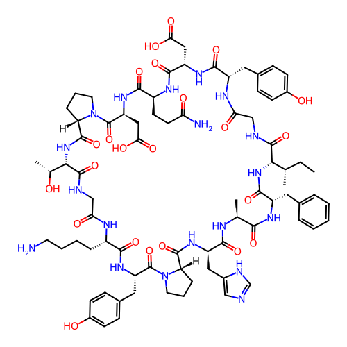 | SMILES | CC[C@H](C)[C@@H]1NC(=O)[C@H](CC2=CC=CC=C2)NC(=O)[C@H](C)NC(=O)[C@@H](CC2=CN=C[NH]2)NC(=O)[C@@H]2CCCN2C(=O)[C@H](CC2=CC=C(O)C=C2)NC(=O)[C@H](CCCCN)NC(=O)CNC(=O)[C@H]([C@@H](C)O)NC(=O)[C@@H]2CCCN2C(=O)[C@H](CC(=O)O)NC(=O)[C@H](CCC(N)=O)NC(=O)[C@H](CC(=O)O)NC(=O)[C@H](CC2=CC=C(O)C=C2)NC(=O)CNC1=O |