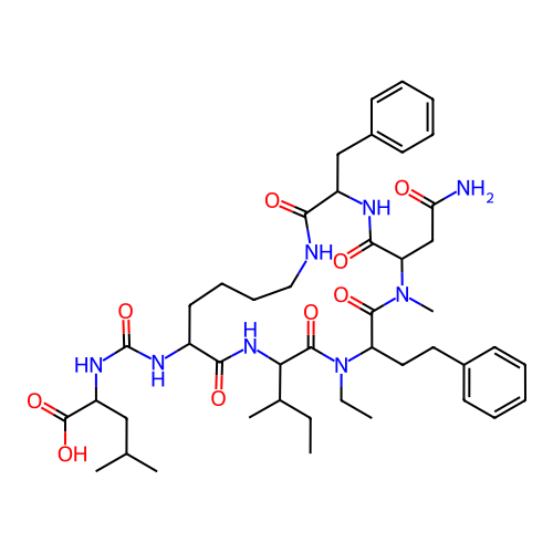 | SMILES | CCC(C)C1NC(=O)C(NC(=O)NC(CC(C)C)C(=O)O)CCCCNC(=O)C(CC2=CC=CC=C2)NC(=O)C(CC(N)=O)N(C)C(=O)C(CCC2=CC=CC=C2)N(CC)C1=O |