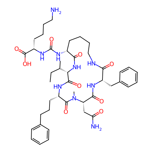 | SMILES | CCC(C)[C@@H]1NC(=O)[C@H](NC(=O)N[C@@H](CCCCN)C(=O)O)CCCCNC(=O)[C@H](CC2=CC=CC=C2)NC(=O)[C@H](CC(N)=O)N(C)C(=O)[C@H](CCCC2=CC=CC=C2)NC1=O |