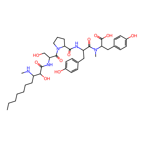 | SMILES | CCCCCCCC(NC)C(O)C(=O)NC(CO)C(=O)N1CCCC1C(=O)NC(CC1=CC=C(O)C=C1)C(=O)N(C)C(CC1=CC=C(O)C=C1)C(=O)O |