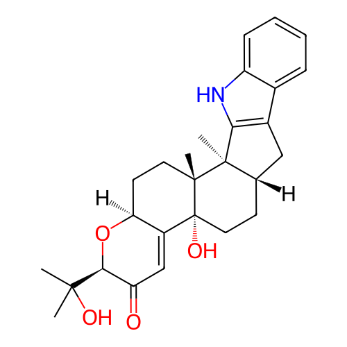 | InChI | InChI=1S/C27H33NO4/c1-24(2,30)23-20(29)14-18-21(32-23)10-11-25(3)26(4)15(9-12-27(18,25)31)13-17-16-7-5-6-8-19(16)28-22(17)26/h5-8,14-15,21,23,28,30-31H,9-13H2,1-4H3/t15-,21-,23-,25+,26+,27+/m0/s1 |