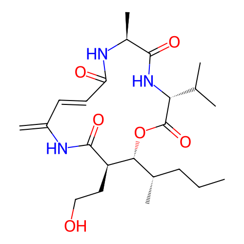 | SMILES | C=C1/C=C/C(=O)N[C@@H](C)C(=O)N[C@H](C(C)C)C(=O)O[C@H]([C@@H](C)CCC)[C@@H](CCO)C(=O)N1 |