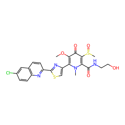 | SMILES | COC1=C(C2=CSC(C3=NC4=C(C=C3)C=C(Cl)C=C4)=N2)N(C)C(C(=O)NCCO)=C(S(C)=O)C1=O |