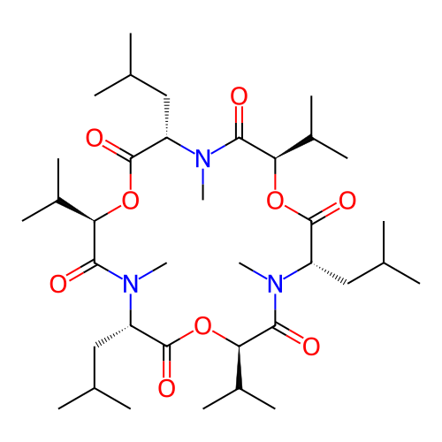 | SMILES | CC(C)C[C@H]1C(=O)O[C@H](C(C)C)C(=O)N(C)[C@@H](CC(C)C)C(=O)O[C@H](C(C)C)C(=O)N(C)[C@@H](CC(C)C)C(=O)O[C@H](C(C)C)C(=O)N1C |